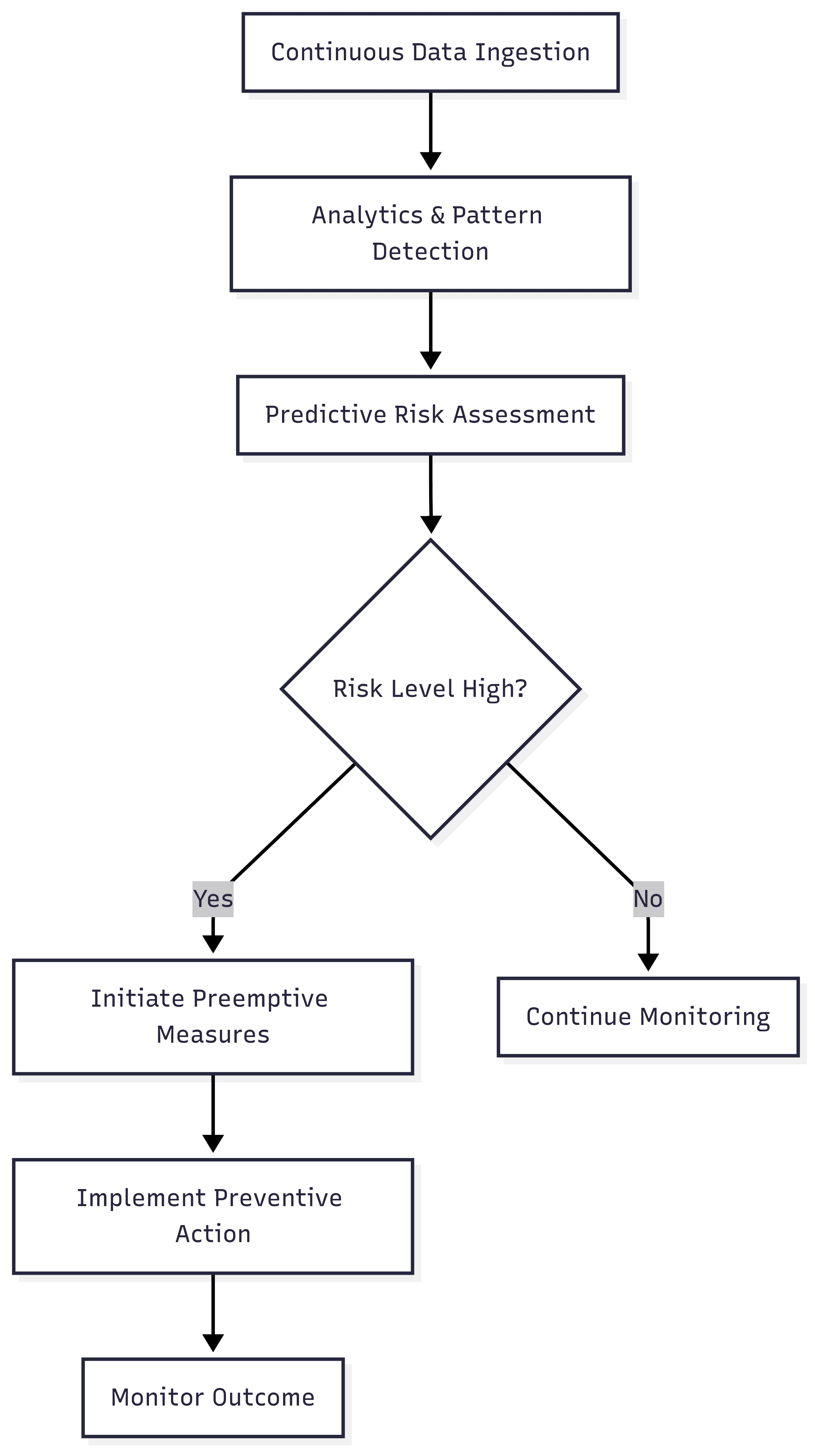 If the risk level is high, the system initiates preemptive remediation measures.Preventive Action